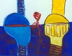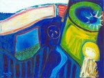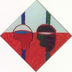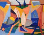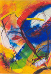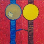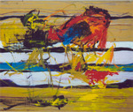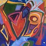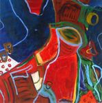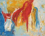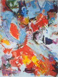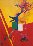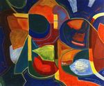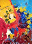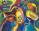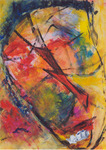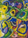 een expressief kleuren- en lijnenspel, waarin verwerkt de initialen van de kunstenaar