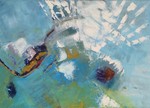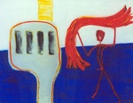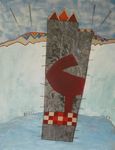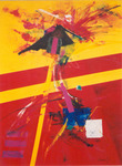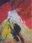 geabstraheerd figuur waarboven een uitbarsting en beneden een wit vlak; vrede?